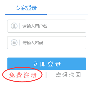 2.点击“专家”进入专家登陆页面。在专家登陆页面中首先要确定是否拥有专家账号,如果有,直接登陆。如果没有则点击