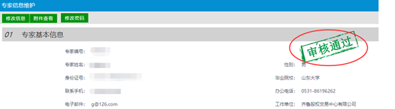 7.信息审核通过之后,页面会有验证通过字样出现。到此专家注册流程结束。