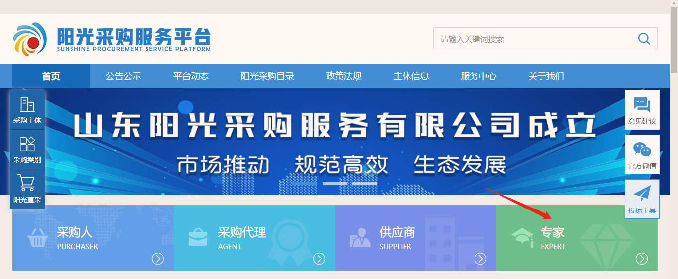 1.打开阳光采购服务平台网站www.ygcgfw.com。